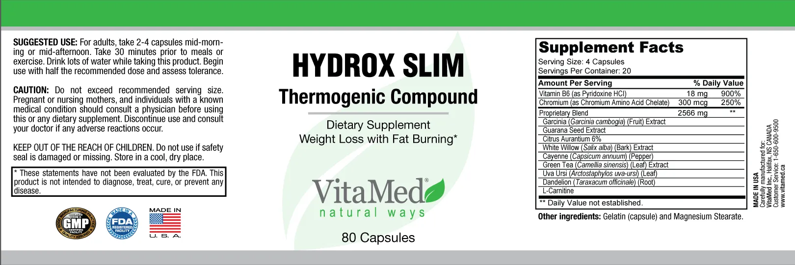 Hydrox Slim has been designed for the sake of creating thermogenesis in your body with pharmaceutical grade herbal extracts. Thermogenesis is the process by which the body generates heat (energy) by increasing the metabolic rate above normal. In other words Hydrox Slim helps you burn fat. It does so also by reducing water retention and your appetite.